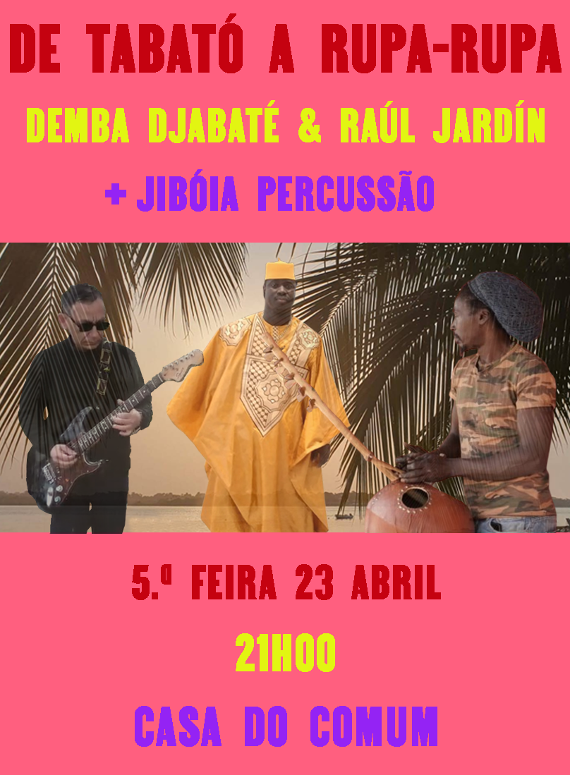 Demba Djabaté e Raúl Jardín regressam à Casa do Comum, desta vez acompanhados oficialmente por Jibóia Percussão, multi-percussionista de Bissau, cuja presença surge na continuidade de um momento inesperado do último concerto e que agora se afirma como parte integrante do projeto.